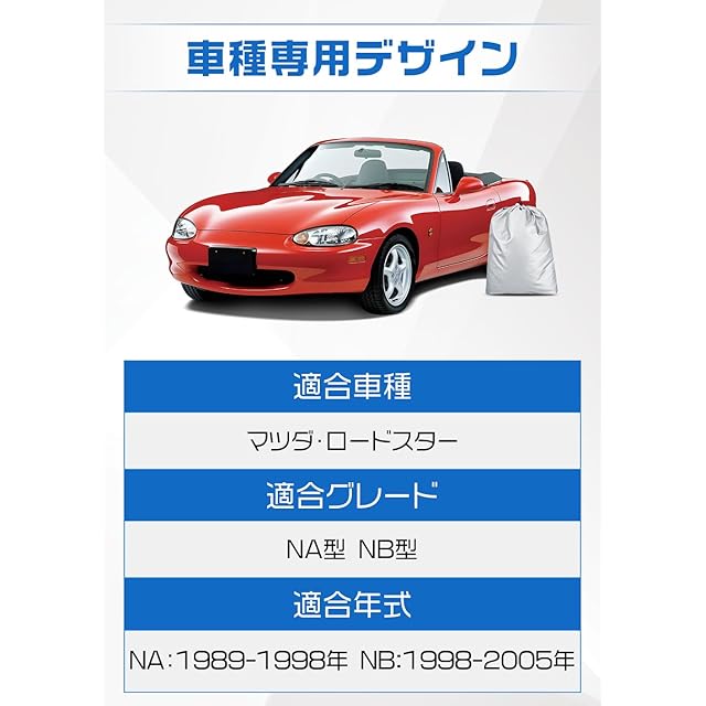 車カバー マツダ ロードスター NA/NB型専用 ハーフカバー 210D防水UVカット 雹・紫外線・鳥のフン対策 凍結防止 車体保護 ボディカバー 風飛び防止ストラップ付き 収納袋付き