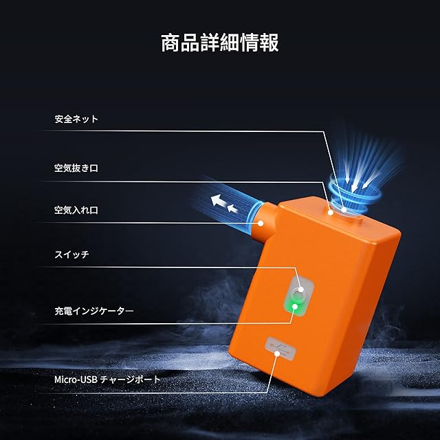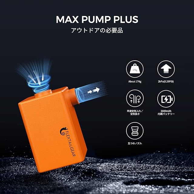 商品名:FLEXTAILGEAR - MAX PUMP PLUS 持ち歩けるエアポンプ 3600mAH電池内蔵 USB充電式 軽いエアポンプ 小型 電動ポンプ 速やかに空気入れ・空気抜く 浮き輪 インフレータブル玩具 エアマットなど対応(オレンジ)