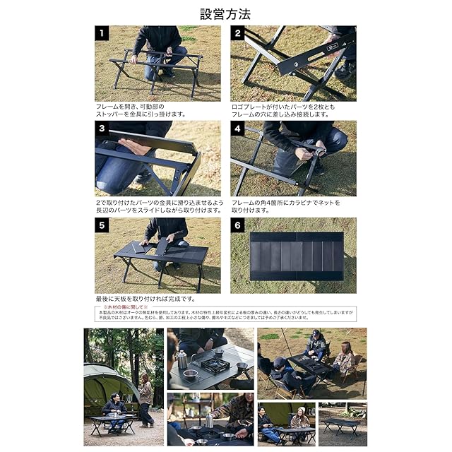 【その他のスペック】・シェラカップなど小物を吊り下げ可能:サイドには見た目と機能性にこだわった吊り下げ箇所を搭載。脚フレームと天板には軽量なアルミを使用:洗練されたイメージは残しつつ可能な限り軽量化を実現しました。収納時はコンパクトに:収納時は積載に困らないコンパクト仕様に。さりげないロゴプレート:ブラックに馴染む主張しすぎないロゴプレートをサイドに配置