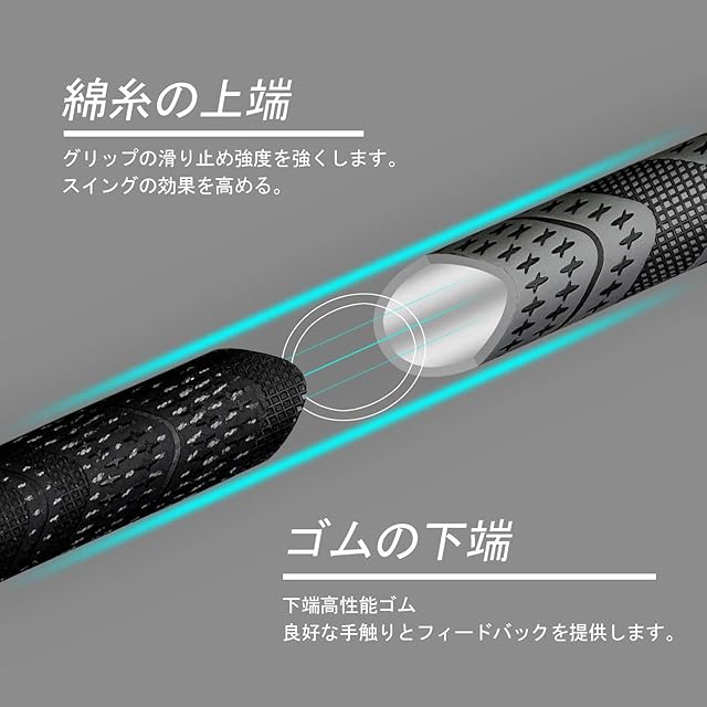 【複合素材】 グリップの上部半分は天然ゴム素材と起毛コットン糸合成技術で作られており、グリップの滑り止め強度を高め、スイング効果を高めます