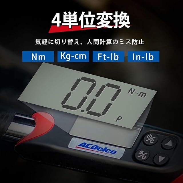 【卓越な品質】ACDelcoは、優れた品質でよく知られています。デジタルトルクレンチは、高品質素材で設計されており、軽量・高出力なプロフェッショナルのツールです。プロ向けの車輌やオートバイなどの修理業界に適しており、高性能且つ長寿命の工業向け工具です。