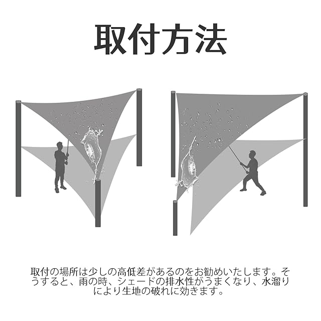 SUNNY GUARDひ雨よけ シェード 5x5x7m アイボリー サンシェード 三角タープ 撥水シェード
