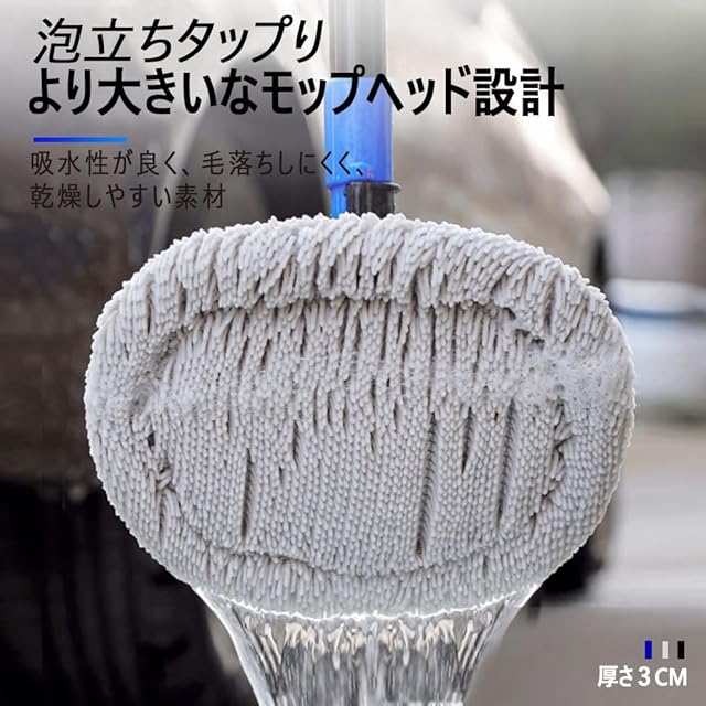 【超柔軟設計素材&愛車に優しい】BLUESEATECのアップグレード洗車ブラシ ロングヘッドは超微細繊維シェニール素材で作られ、柔らかくて軽いです。柔らかく、糸くずが出ず、渦巻かず、傷がつきません。塗料やその他の繊細な表面にも安全で、特に車の表面にも安全です。洗車用モップは非常に吸収性があり、毛落ちしにくく、乾燥しやすい素材です。洗浄後は車のトランクや収納スペースに簡単に収納できます。余分なスペースを取らず、持ち運びも便利です。モップ部分を外して洗って、繰り返しの使用が可能です。