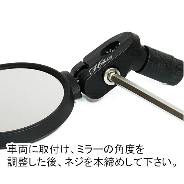 【商品詳細】<br> <br> ・商品名 : Hafny リヤビューミラー ブルーミラーラウンドタイプ <br> ・サイズ : ミラー部 円形約61mm ハンドル部取り付け内径17~23mm<br> ・色 : ブラック <br> ・重量 : 約86g <br> ・付属品 : 本体のみとなります。取扱説明書・取付工具は付属しません。<br> 取付は5mmアーレンキーが必要です。<br> ・材質 : ナイロンファイバープラスチック(鏡面ミラー部ラウンドガラス)<br> ・商品状態: 新品<br> ・生産国 : 台湾<br>