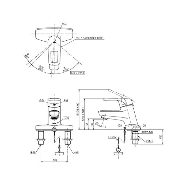 TOTO 洗面所水栓 台付2穴・エコシングル ゴム栓式(取替用) TLHG30EGR