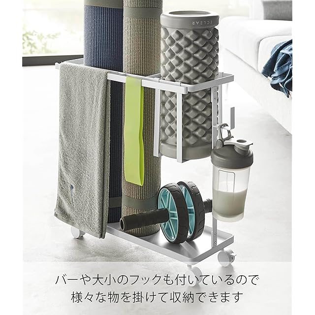 商品名:山崎実業(Yamazaki) キャスター付き フィットネス グッズ 収納 ラック ホワイト 約W50.3×D18.5×H45.5cm(キャスター含む) タワー tower 筋トレグッズ 収納ラック 1989