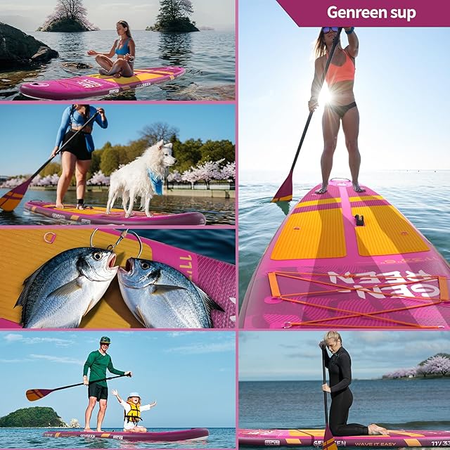 商品タイプ:GENREEN sup インフレータブル,スタンドアップパドルボード,パドルボード インフレータブル,supボード,パドルボード,sup パドルボード,サップボード,sup,ワイドなパドルボード,補強型素材,335*83*15cm(モンステラ・ピンク)