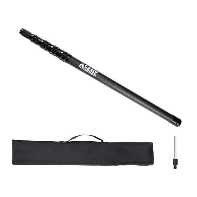 キャンプグリーブ タープポール カーボン 製 (高さ210cm 直径29cm) (無段階調節のため1cm単位で調整可) テントポール 伸縮ポール 【日本人キャンパー監修説明書付】