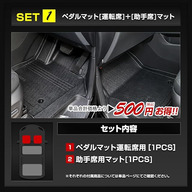 セット内容:[1]ペダルマット[運転席用] 1PCS [2]ペダルマット[助手席用] 1PCS