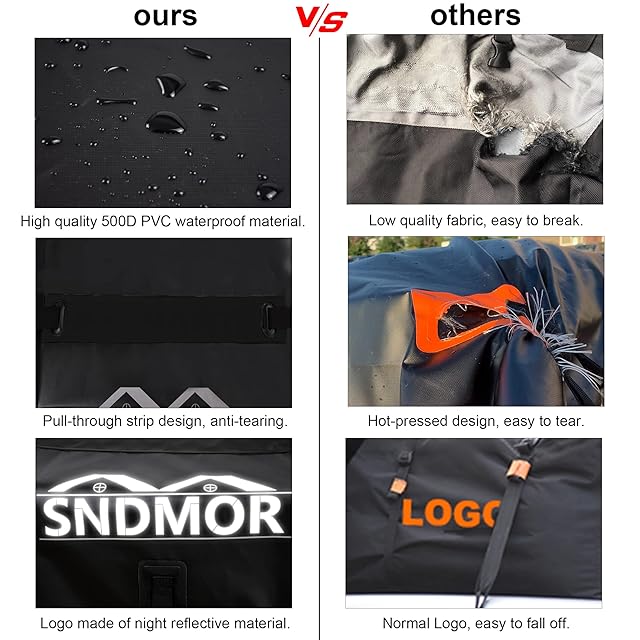 【さまざまなモデルに適用可能】SNDMORルーフバッグは、ルーフラックが取り付けられているかどうかに関係なく、ほとんどの車またはSUVに適しています。 フレーム構造がないので、使わないときは簡単に折りたたんで収納できます。