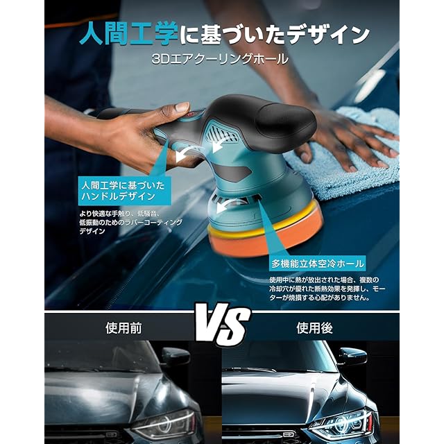 【偏心軸設計】太い銅芯モーターを採用し、太い銅線を巻き付けることで、均一な高週期運転により研ぎが細かくなり、耐熱構造となっています。そして市場の新型の偏心構造の回転方式を採用して、不規則な研磨経路を使用して、初心者も簡単に操作することができます。ポリッシャーは12mmの偏心レールを採用し、より大きな研磨面積とより強い研磨力を提供します。傷のペンキの表面を覆って、大いに仕事の能率を高めて、仕事の時間を短縮して、仕事の電力、能率にいっそう優れています。また、研磨機の本体とダイヤルには、過熱を避けるために複数の放熱口が設けられています。
