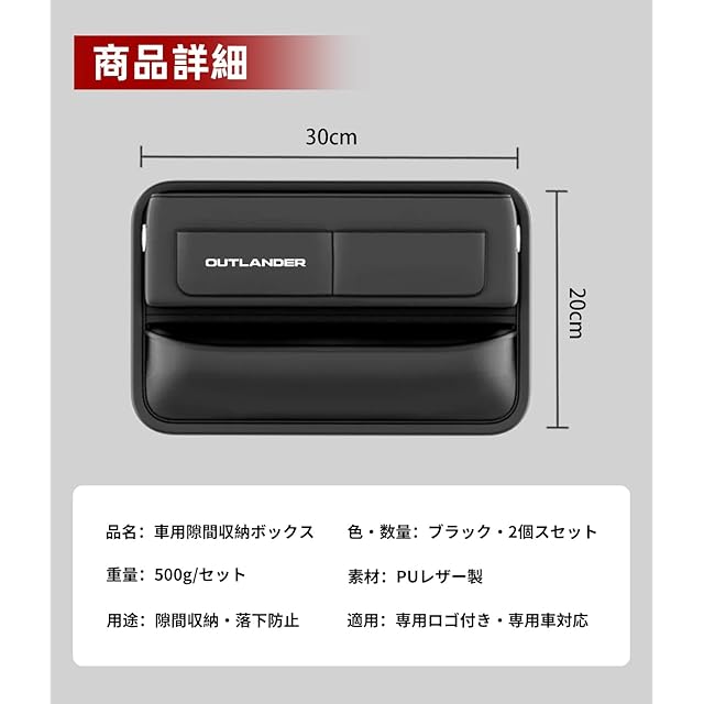 商品名:【アウトランダー 専用】隙間収納ボックス OUTLANDER 専用ロゴ シートサイドポケット 車 アウトランダー PHEV GN系 M G P グレード 対応 大容量 収納 小物入れ 落下防止 カー用品 車内 アクセサリー 便利グッズ 運転席+助手席用 ロゴ左右方向 2個セット (ブラック,アウトランダー 専用)