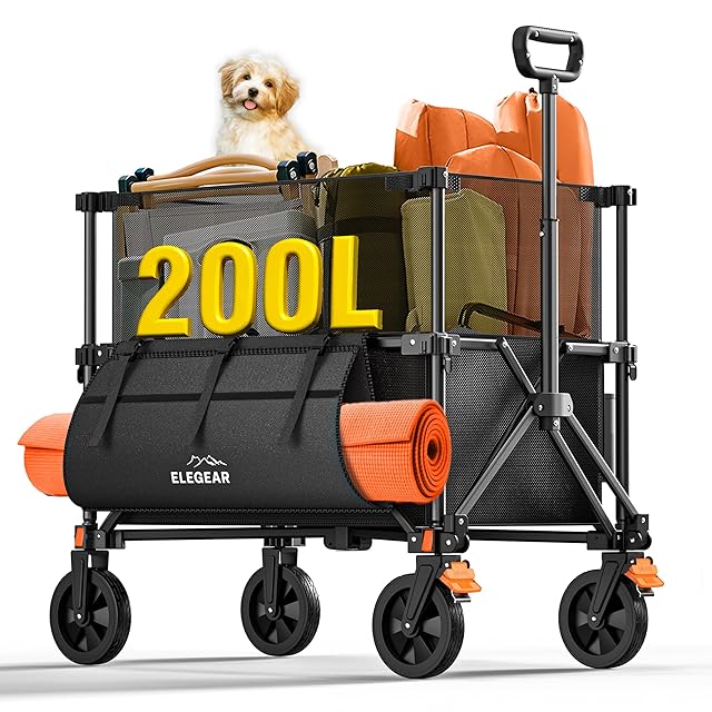 Elegear アウトドアワゴン キャリーワゴン 200L 耐荷重200kg 容量可変式 全地形対応360°ホイール 折り畳み式 軽量コンパクト設計 キャンプ ビーチ スポーツ ショッピング用