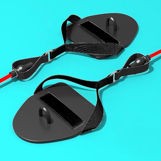 【水泳のトレーニングに】:水泳用のトレーニングチューブです。こちらのトレーニングチューブは高弾力で、パドルがついているため、水泳で使う必要な筋力を陸上で強化できるほか、肩周りの柔軟性アップのためにも活用できます。より競技力を向上させる為にご利用ください。