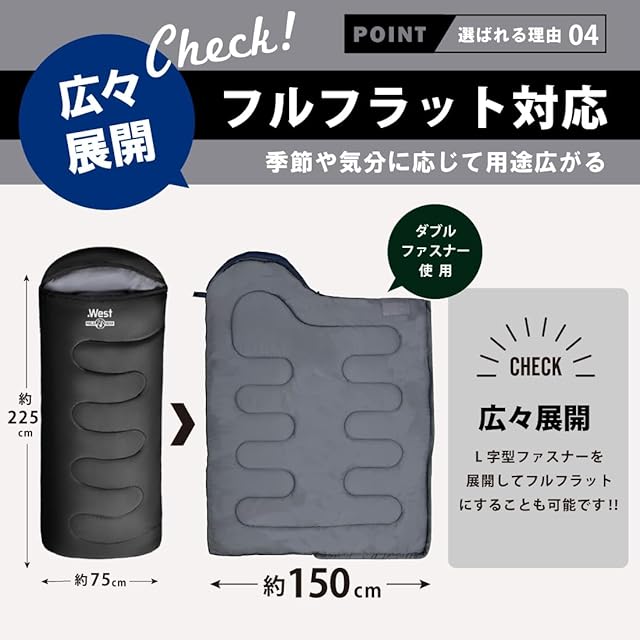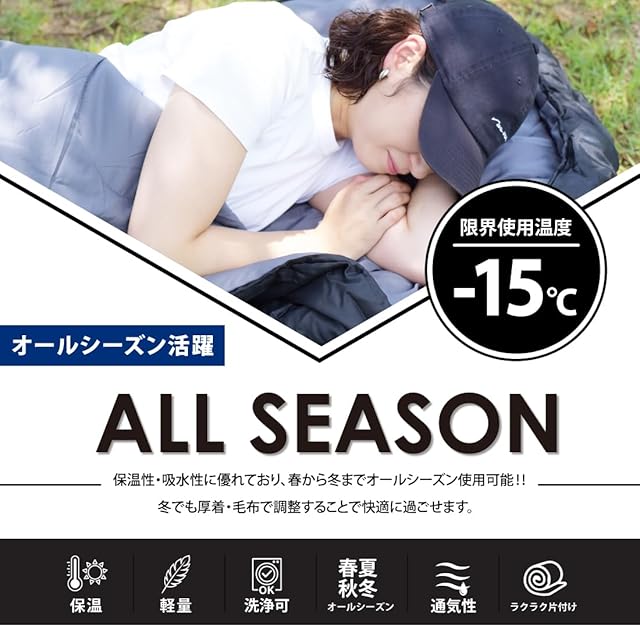 【選ばれるワケ1】アウトドアはもちろん、車中泊や仕事場での仮眠、自宅での敷き布団、掛け布団代わりにもなり災害時にも役立ちます。足元を開けて温度調節ができる寝袋です。