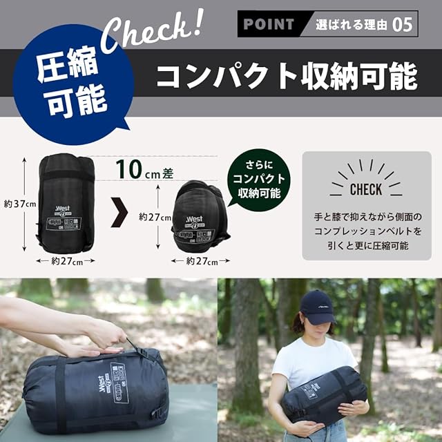 【選ばれるワケ2】男性から女性までしっかり対応しています。簡単に収納でき、圧縮ベルトでコンパクトに持ち運びができ便利です。洗える寝袋ですので衛生的です。