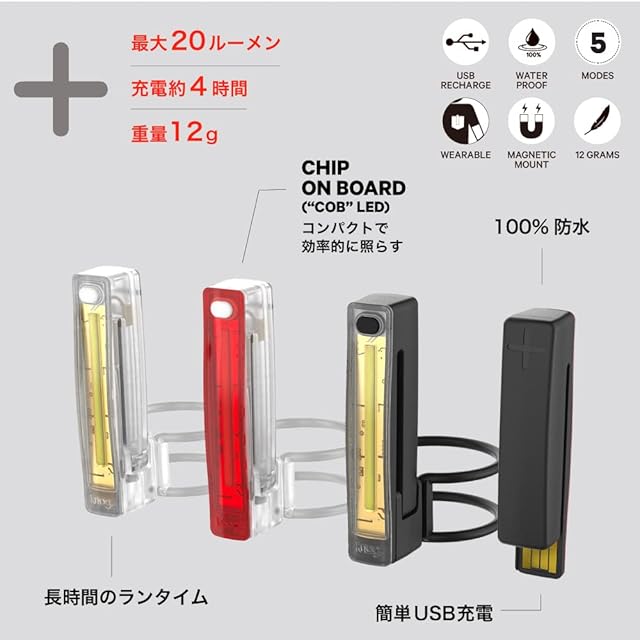 商品名:【日本正規品】 KNOG(ノグ) 自転車 ライト ノグプラス [PLUS] リアライト 20ルーメン 強力マグネット 防水 USB充電式 軽量 ブラック
