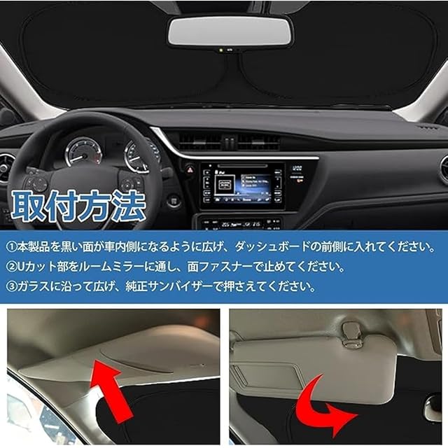 【簡単取り付け】取り付けは素早く簡単で、誰でも簡単に取り付ける可能です。サンバイザーで固定することができるのでルームミラーの後ろにしっかりと固定できる!また、収納袋があります。折り畳みでコンパクトに収納可能です。場所を取らない。