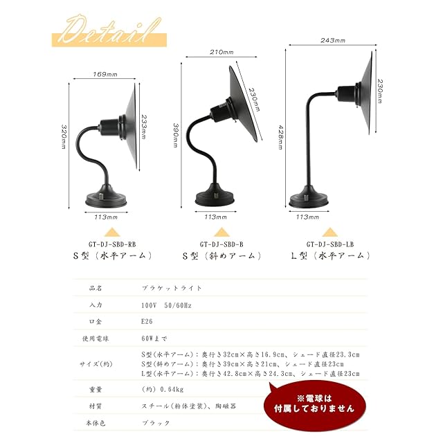 商品内容:(水平アーム)電球なし