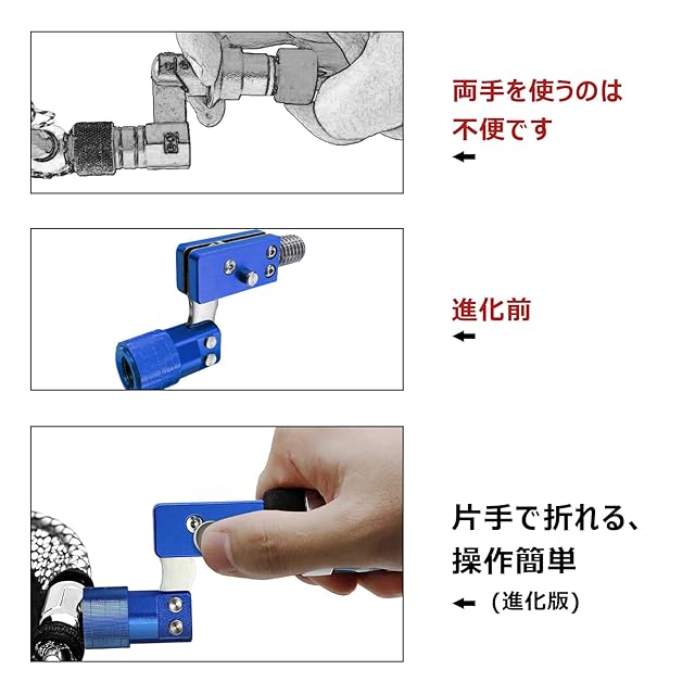 【片手操作ビッグボタン】■ワンタッチでパッと開閉でき、片手でも安全に操作できる。折り畳み時・展開時に自動でロックが掛かり、ロック解除レバーを親指等で押すことで展開と折り畳みができます。軽い力で解除できる仕様となっているため、ランディング時にスムーズな取り込みが行えそうです。