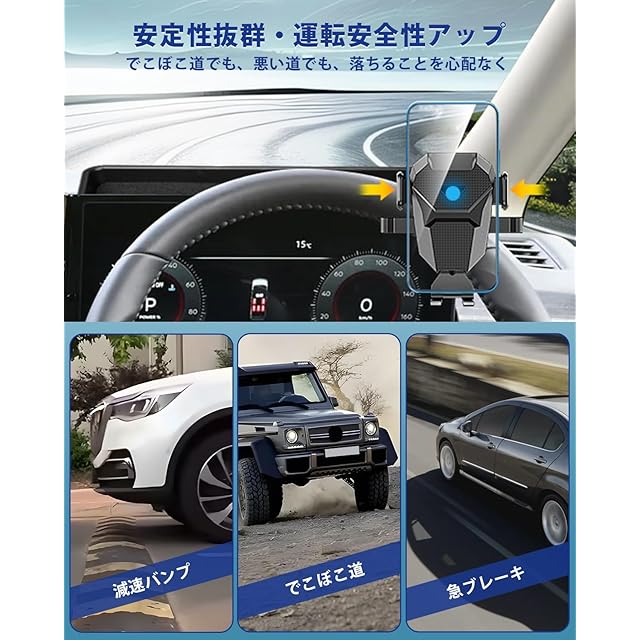 2.【材質・耐久性】:スマホホルダー:ABS樹脂製 (耐高温)。ベース:PC素材。【セット内容】:ベースx1、スマホホルダーx1、ボールジョイントx1。※注意:本製品は取付説明書がありませんでした。ご了承ください。【幅広いスマホ対応】:4-6インチのスマホに適用しています。iPhone 13 promax /iPhone 12 promax/iPhone 11 promax/iPhone XS MAX/iPhone 8 Plus/7 Plus/7/6 Plus、または Galaxy S8 Plus/huawei/Xiao Mi/Xperia/Google Pixelなどの機種に対応可能です。(※注意:11 Pro/ iPhone X/XS/XS/iPhone SE/SE 2/iPhone 8/iPhone 6/Galaxy S8などの機種に対応する可能ですが、スマホケースを装着しないスマホには、ご利用の場合、音量ボタンが押されてしまうかもしれません。ご了承ください。)