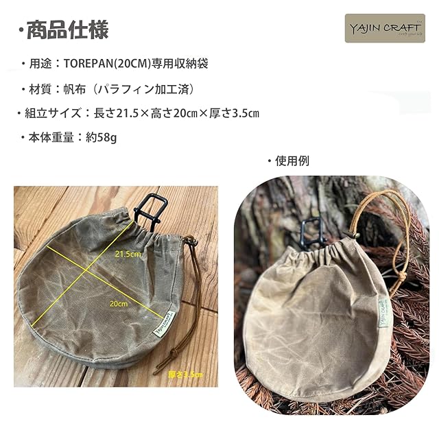 YAJIN CRAFT Torepan20㎝用収納バッグ 鉄板フライパンケース BBQ バーベキュー ピクニック アウトドア キャンプ用品…