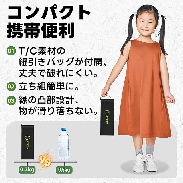 商品名:ATEPA キャンプ テーブル 超軽量 アルミ製 ミニ ローテーブル 折りたたみ式&連結可能 コンパクト収納 ソロキャンプ・釣り用 3枚セット 収納袋付き グリーン