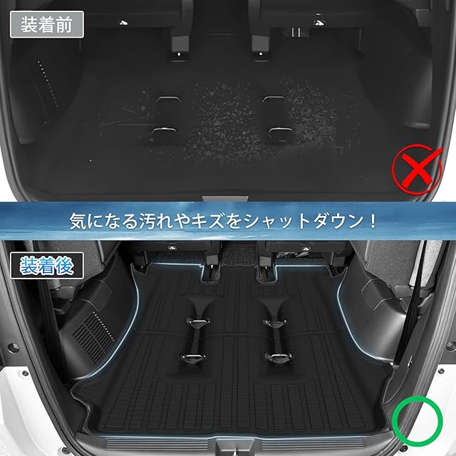 5.【簡単取付】車種専用設計なので、隙間なく装着し、純正品並みのフィット感を手に入れます!取付は純正マットを取り外し、そのままトランクに敷くだけです。女性1人でも簡単に装着できます。「※ご注意:配送サイズ規定の関係で商品を折りたたんだ状態でいたします。商品到着直後は折り目残ることもございますが、弾性の高い素材ですので時間たって元の状態に戻ります。予めご了承ください。※コツ:ヘアドライヤーを使えばより元の状態に戻りやすいです。※」