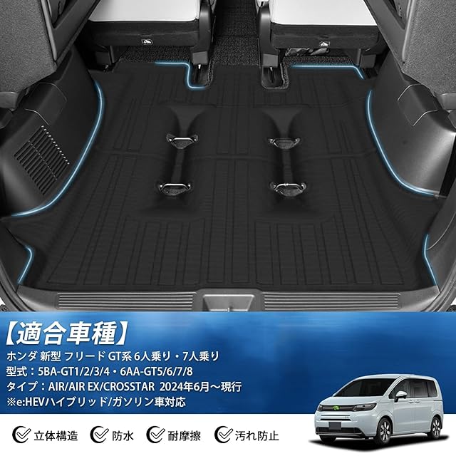 1.【適合車種】①ホンダ 新型 フリード GT系 6人乗り・7人乗り;e:HEVハイブリッド/ガソリン車対応;型式:5BA-GT1/2/3/4・6AA-GT5/6/7/8;タイプ:AIR/AIR EX/CROSSTAR;年式:2024年6月~現行;「セット内容」ラゲッジマット 1pcs。※年式・グレード・オプションにより適合しない場合がございます、形状をご確認いただいたうえ、お買い求めください。