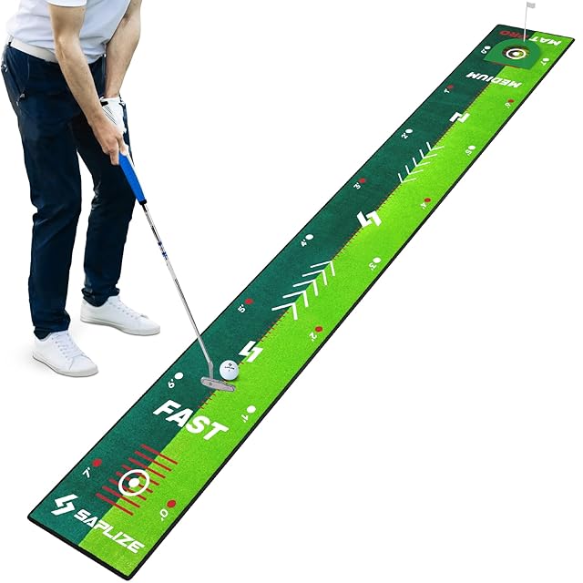 Saplize セープライズ ダブルスピード パター練習マット ターゲットカップ付き 家庭用実用型 小型 250x30cm