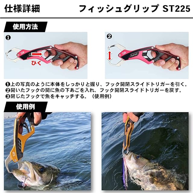 ダイワ フィッシュグリップST 225 (フィッシュグリップ フィッシュキャッチャー)■全長(mm):225■重さ(g):約140■発売年:2019年≪ダイワ フィッシュグリップ フィッシュキャッチャー≫