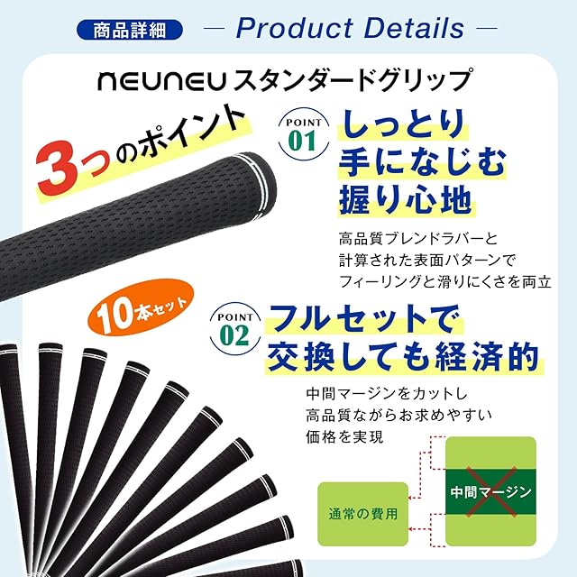 商品名:ゴルフ グリップ ツアーベルベット ラバー 互換品 10本 R60 口径 バックラインなし 社外品 ゴルフプライド ブラック 黒 neuneu