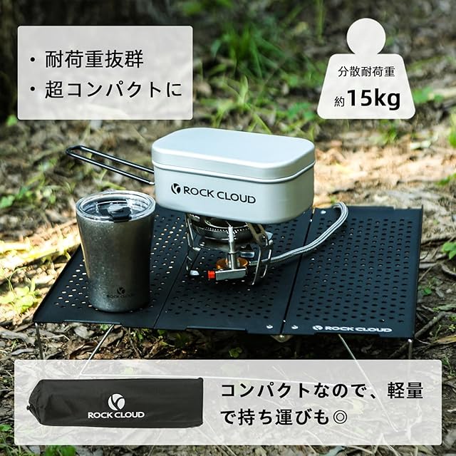ROCK CLOUD キャンプ テーブル リンク付き 組立簡単 超軽量 アウトドア ローテーブル 耐荷重15kg 折りたたみ コンパクト ソロキャンプ バックパッカー ハイキング bbq 登山 ツーリング 収納袋付き (Black-L)