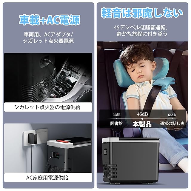 本体サイズ(外部):33.5*20.3*28.5cm 本体サイズ(内部):24*21.5*15cm 外箱サイズ:35.5*23.5*32.5cm ネットウェート:2.1kg 材質:ABS+PP+PE カラー:ブラック セット内容:本体*1、家庭用コード*1、車用コード*1、ステッカー(ランダム)*36、栓抜き(ランダム)*1、日本語取扱説明書*1、ボックス*1