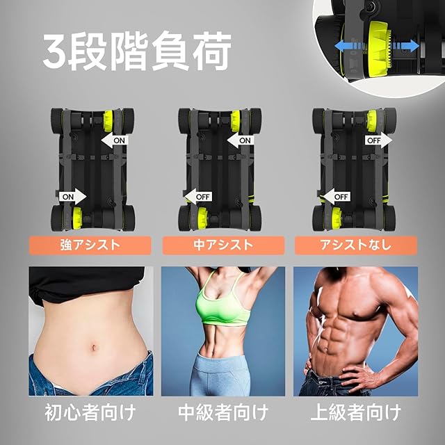 【3つのモードで自由に調整】 両側アシスト:アシスト最大で楽にトレーニング 片側アシスト:バランスを調整しながら鍛える 補助なし:負荷を高め、本格トレーニング