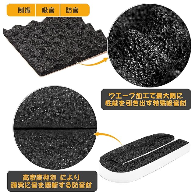 商品名:ZHUBANG 防音材料 スピーカー用防音テープ スピーカー背面制振吸音材 制振シート 防音フォームパネル 断熱マット吸音マット 自動車用断熱フォーム 制振材増量+内張りはがし豪華48点セット