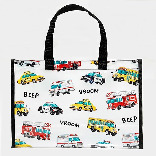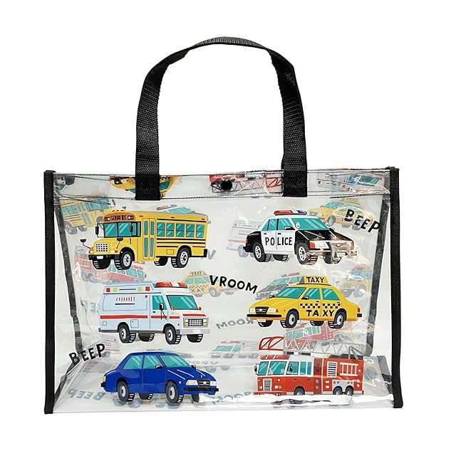 [kiejun] プールバッグ ビーチバッグ 男の子 プール 海水浴 子供 透明 防水 小学生 幼稚園 保育園 ビニールバッグ ML 男児 (01 働く車 BL)