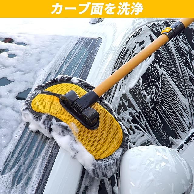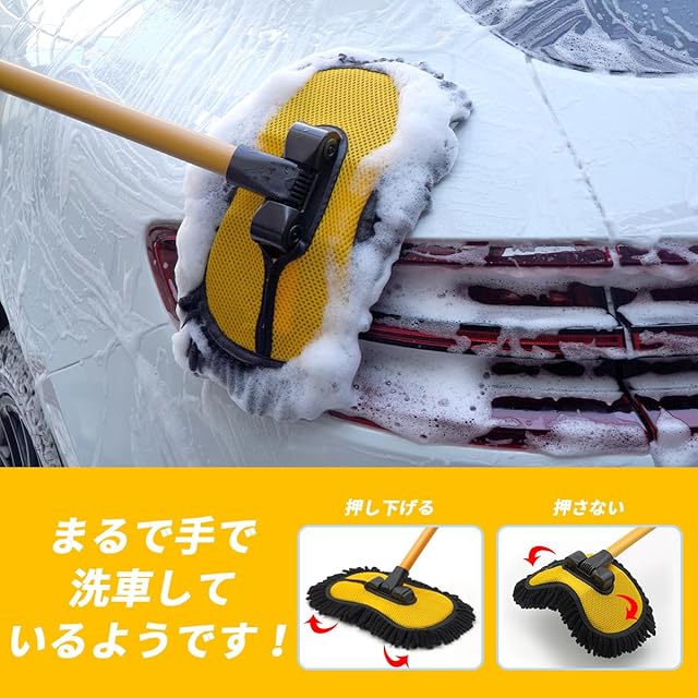 【ヘッド角度自動調整】ヘッドブラシの自動調整機能で、洗車を効率的に行えます。ヘッド角度が自動調整可能なため、洗車がもっと簡単になります。モップは取り外して洗って再利用できます。