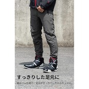 表面に超撥水加工を施した、高強度エアスルーストレッチ生地を採用し、 ストリートスタイルに合わせやすいジョガーパンツをライディング仕様に。裾にかけて細くなっていくテーパードシルエットで足元をすっきり見せてくれます。高いストレッチ性とゆとりのある履き心地で、ライディング中や降車後も動きやすいエアスルーライディングパンツです。フォームタイプのヒッププロテクターは、別売りのTRV086ヒッププロテクターにてアップグレードが可能です。