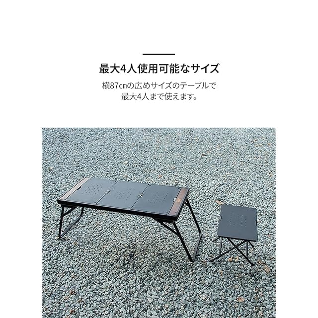 組み立てに5秒、重さはたった3kg IGTテーブル アルミ製の軽量折りたたみテーブルで収納と携帯が容易し最大4人まで使用可能なプルマラインのIGTテーブルです。最大4人使用可能なサイズ 横87㎝の広めサイズのテーブルで 最大4人まで使えます。テーブル重さたった3㎏ アルミニウムで製作された軽量折りたたみテーブルで重さはたった3㎏の軽量にも関わらず耐久性は高いです。組み立て完成まで5秒 素早く組み立て及び収納が出来、バーナープレート互換、 サブテーブルなど様々な活用が可能です。
