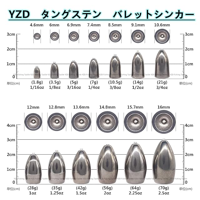 商品名:YZD タングステン バレットシンカー TG 14g 1/2oz 【10個】