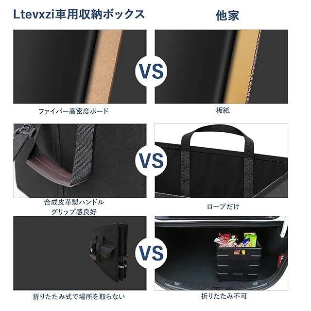 商品名:Ltevxzi 車用 折りたたみ式収納ボックス 防水/滑り止め/ハンドル付き 車トランク収納ボックス 保温・保冷 旅行用 大容量72L保管ボックス RVボックス(ブラック) (深黑)