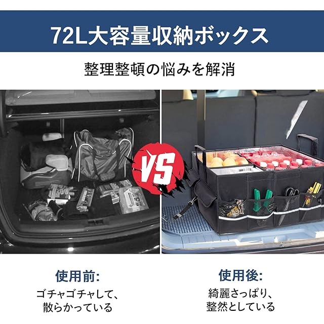 【大容量・多機能収納】収納ボックスは72Lの大容量で、旅行やピクニック、キャンプなどの食品やアイテムの持ち運びに最適で、家族での収納や貯蔵にも最適です。ボックスは小さくて場所を取らず、折りたたんだとノートパソコンと同じくらいの大きさです。 ボックスの外側には美しいポケットが追加され、さまざまなアイテムを簡単に収納できます。 丈夫で美しく、高品質、収納に役立ちます。