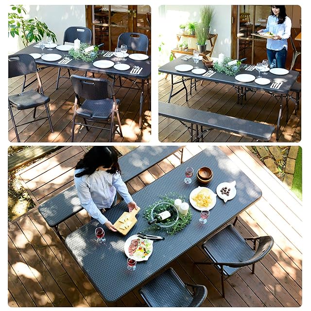 ガーデンマスター(Gardenmaster) 折りたたみガーデンベンチ 幅183×奥行28×高さ43.5cm ウィッカー調 お庭 ベランダ テラス バルコニー ガーデンマスター ダークブラウン HFB-1828