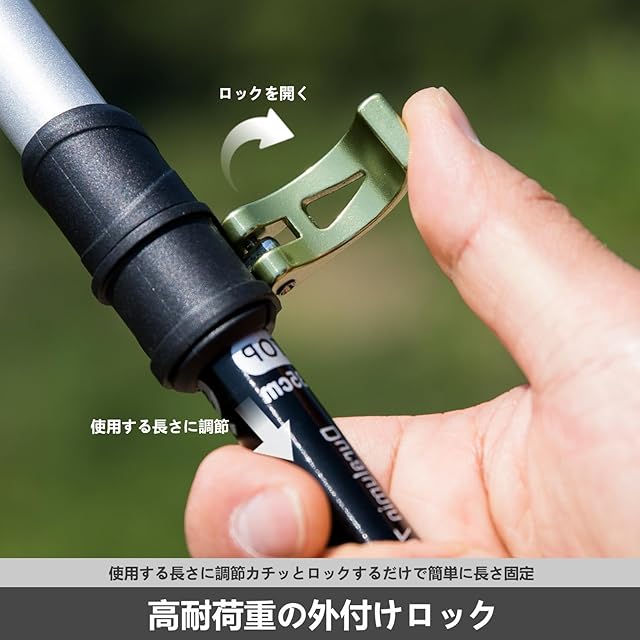 【超軽量材質】 7075アルミ合金採用で、岩場や急斜面でも折れにくく、長時間の使用でも腕への負担を最小限に抑えます。