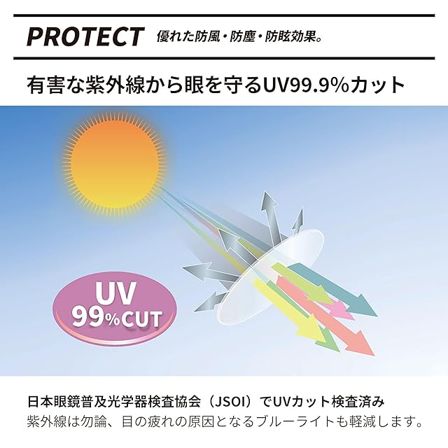 UV99.9%カット、耐衝撃性に優れるポリカーボネイト偏光レンズは、紫外線や突然の飛来物から目と肌をガード
