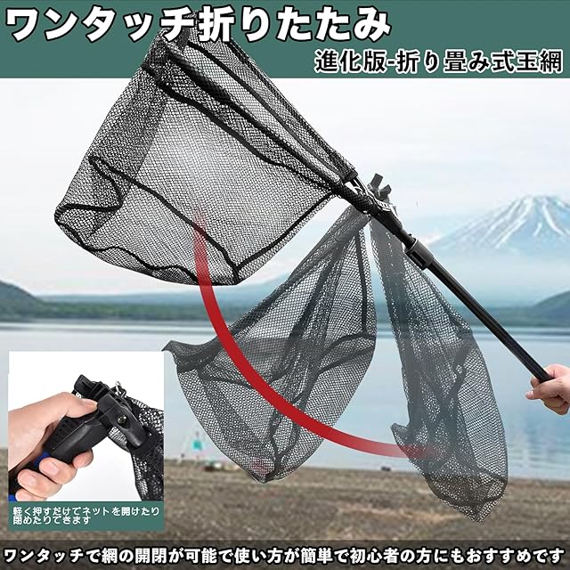 【進化版-折り畳み式玉網&ワンタッチ折りたたみ】折りたたみ式:2段階伸縮できて、また、折り畳み式なので、簡単に収納できます!テレスコピックの継ぎ目にある固定ロックをオープンすると必要な長さを調節できます。最大長さは約92cm/180cm/210cm/230cmです。ワンタッチで網の開閉が可能で使い方が簡単で初心者の方にもおすすめです