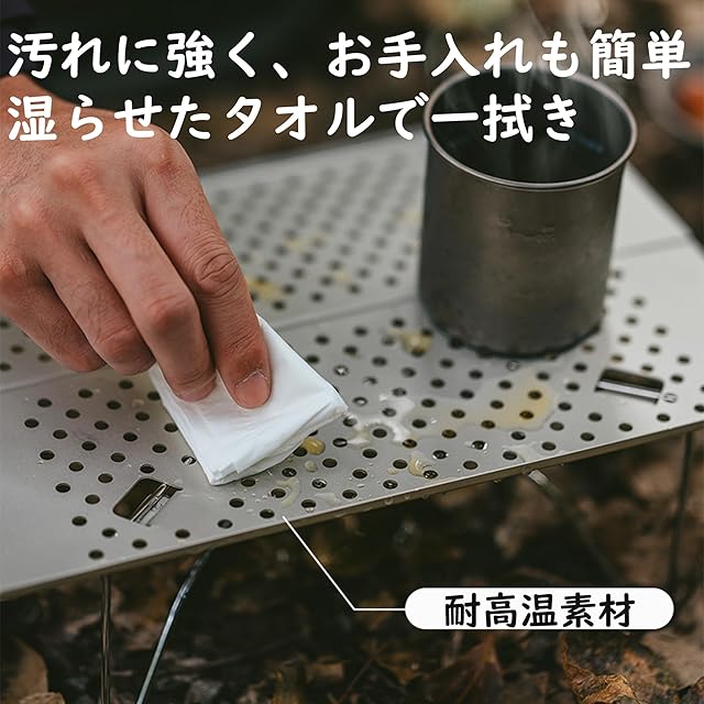 【耐高温、汚れに強い、手にやさしい】この小さい折り畳みテーブルの天板はアルミ合金製で、高温に強く、汚れがつきにくく、手入れも簡単です。飲み物や食べ物をうっかりこぼしても、湿ったタオルで軽く拭くだけでピカピカになります。さらに、テーブルの縁には面取り加工が施されており、円滑になり、手を切ることなく安心して使用できます。