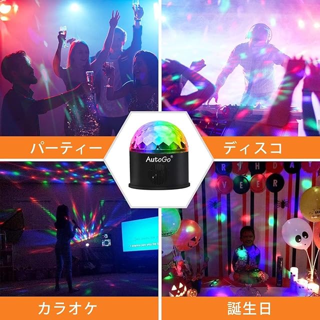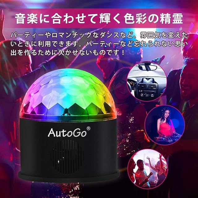 商品名:AutoGo ミラーボール ディスコライト 【9色RGB】LED ステージ 舞台照明 リモコン付き 音声起動 多機能 水晶回転式 USB給電式 ミラーボール 回転 家庭用 パーティー 祝日 カラオケ クラブ 文化祭 ガーデン 誕生日 屋外