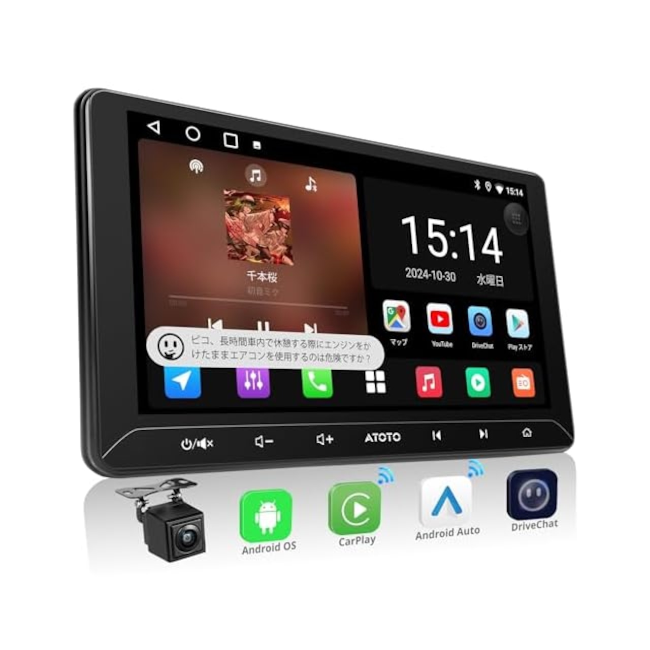 商品名:ATOTOLIFE A5L 10インチ Androidナビ 2DINディスプレイオーディオ、大画面オーディオ一体型カーナビ、無線Android Auto&CarPlay ワイヤレス、WiFi 対応/Bluetooth/USBテザリング、24バンドEQ DSP 内蔵、ミラーリンク、FM/SWC/GPS、AI連続会話&GPS追跡、2G+32G、バックカメラ、映像入力・出力対応